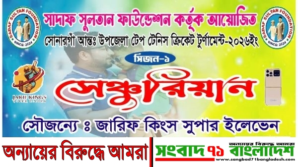 “মাদকমুক্ত সোনারগাঁ গড়তে একাট্টা ইউএনও ও সাদাফ সুলতান ফাউন্ডেশন: আন্তঃউপজেলা টুর্নামেন্টের প্রস্তুতি তুঙ্গে”